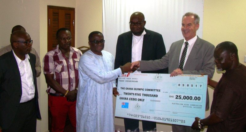 The Australian High Commissioner, Andrew Barnes, presented cheques for GH¢25,000 to the Ghana Olympic Committee (GOC) and GH¢ 25,000 to the Azumah Nelson Foundation. These funds will assist both organisations in preparations for the 2018 Gold Coast Commonwealth.