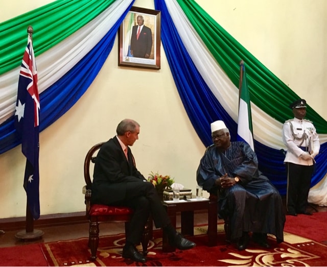 His Excellency Andrew Barnes is officially Australian High Commissioner to Sierra Leone after presenting his credentials to President Ernest Bai Koroma in Freetown. The visit was a great opportunity to hear about Sierra Leone’s progress in implementing post-Ebola recovery plans, and discuss how Australian mining investment can help boost the economy.