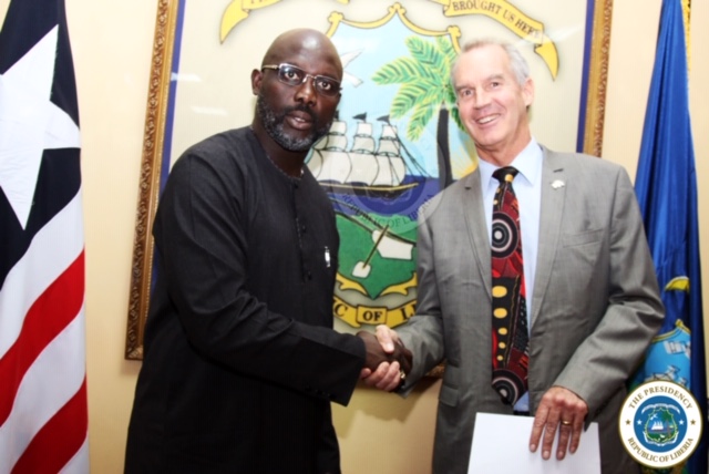 Australian Ambassador Andrew Barnes presents credentials to Liberian President George Weah